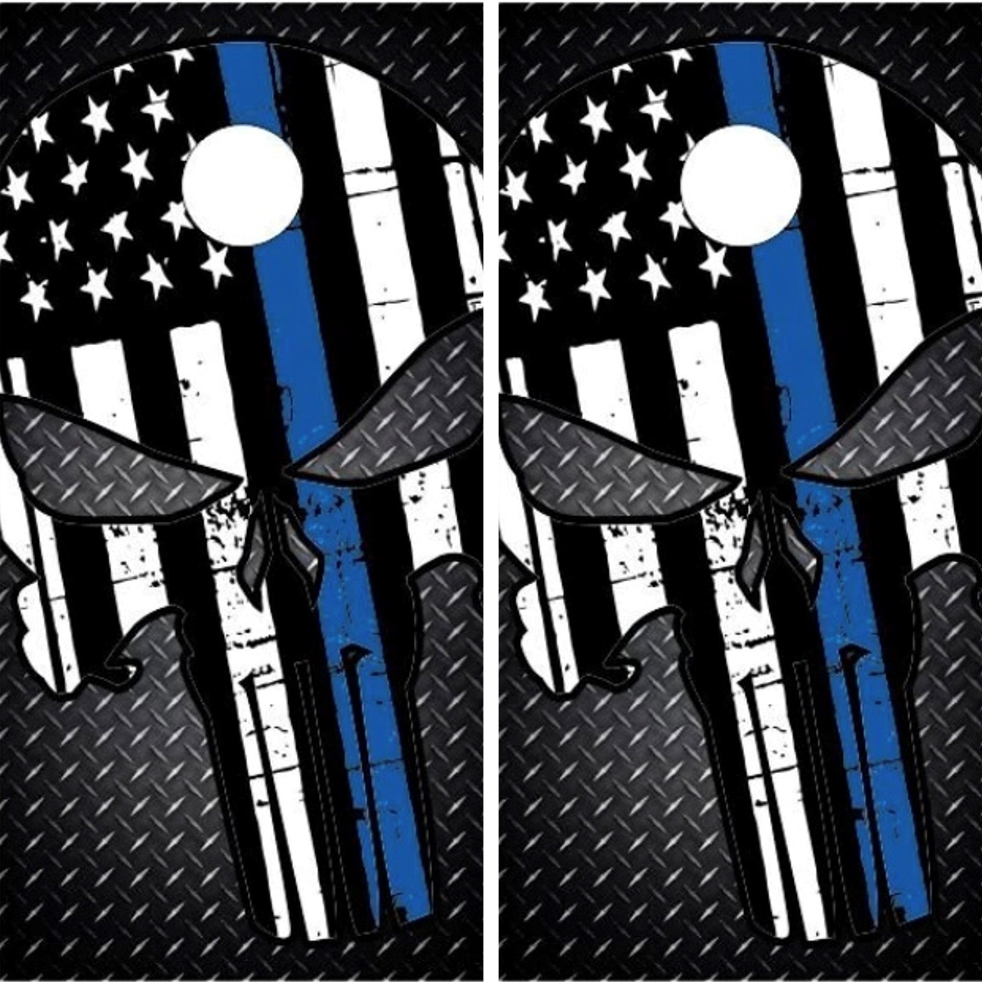 Punisher Blue Line Skull Diamond Plate