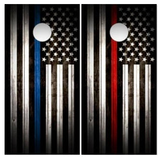Thin Red Blue Line Wood Flag